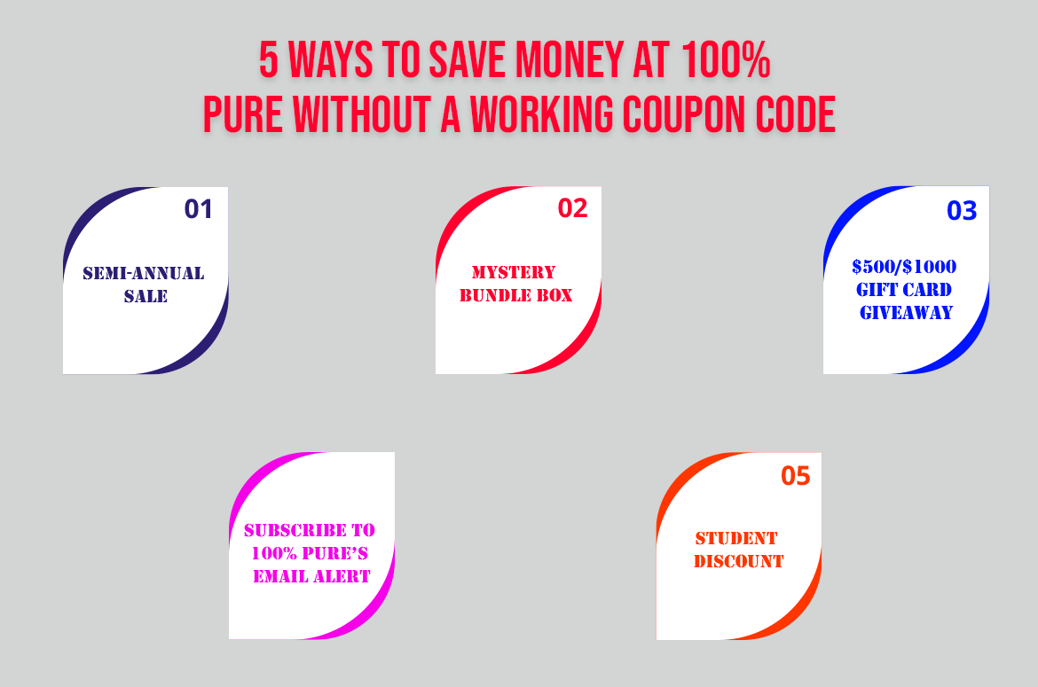 Let’s say you have been busy and too tired to look for a 100% Pure coupon code or you have tried and couldn’t find a single working 100% Pure coupon code, though it is highly unlikely that you do not find a single working code for 100% Pure because they keep posting new offers in the form of Promo codes, sales, and deals. But there can be situations when things like this may happen. What would be the possible ways to save money at the 100% Pure online store? Well, there are plenty of ways to get a quick saving done not only at 100% Pure but on almost all online stores. Here are five of those ways: