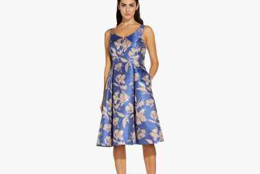 Go Mid Length with AdriannaPapell's Metallic Floral Jacquard Midi-Length Dresses
